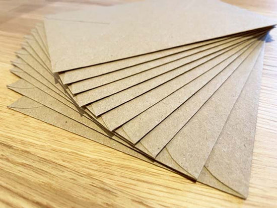 We supply our standard cards with recycled kraft envelopes (except the hot foiled range which come with white laid envelopes).