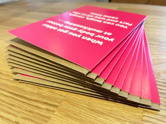 We love to supply our cards 'naked', without any cellophane wrapping (but can supply cello-wrapped if preferred).