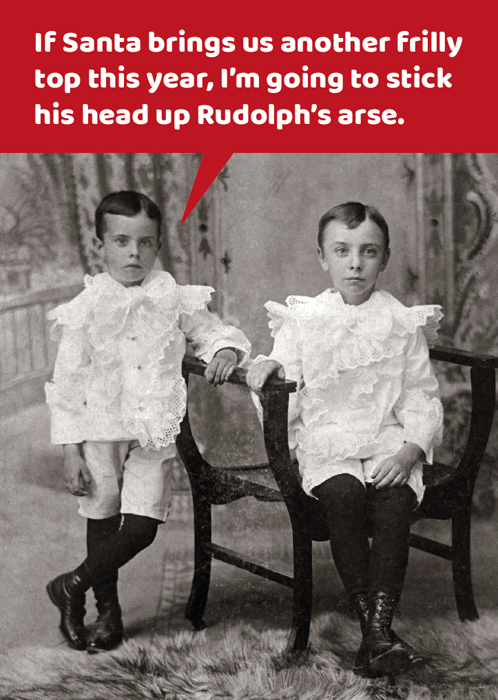 If Santa brings us another frilly top this year, I'm going to stick his head up Rudolph's arse.