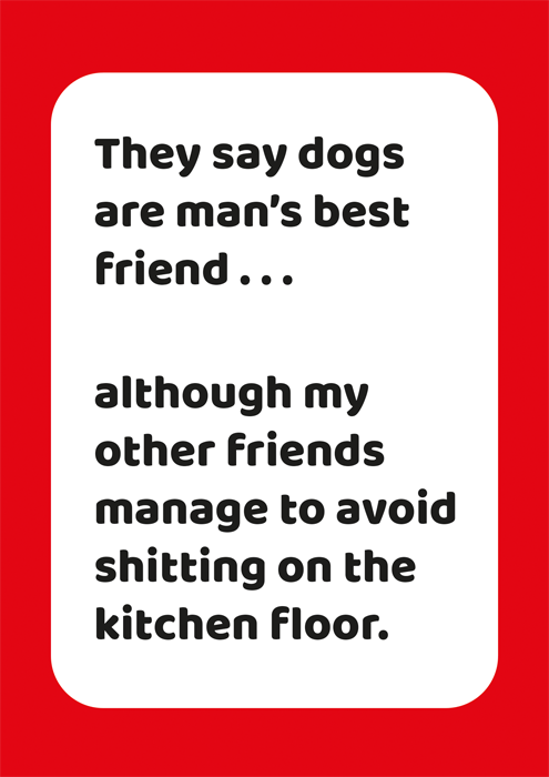 They say dogs are man's best friend . . . although my other friends manage to avoid shitting on the kitchen floor.