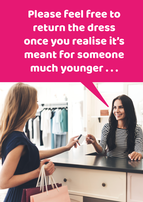 Please feel free to return the dress once you realise it's meant for someone much younger . . .